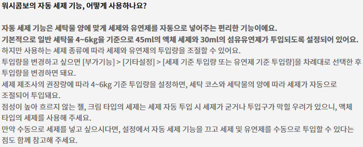 • 워시콤보의 자동 세제 기능, 어떻게 사용하나요?