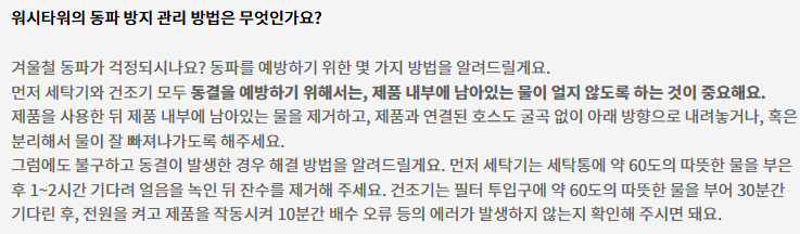 Q3. 워시타워의 동파 방지는 어떻게 관리할 수 있을까요?