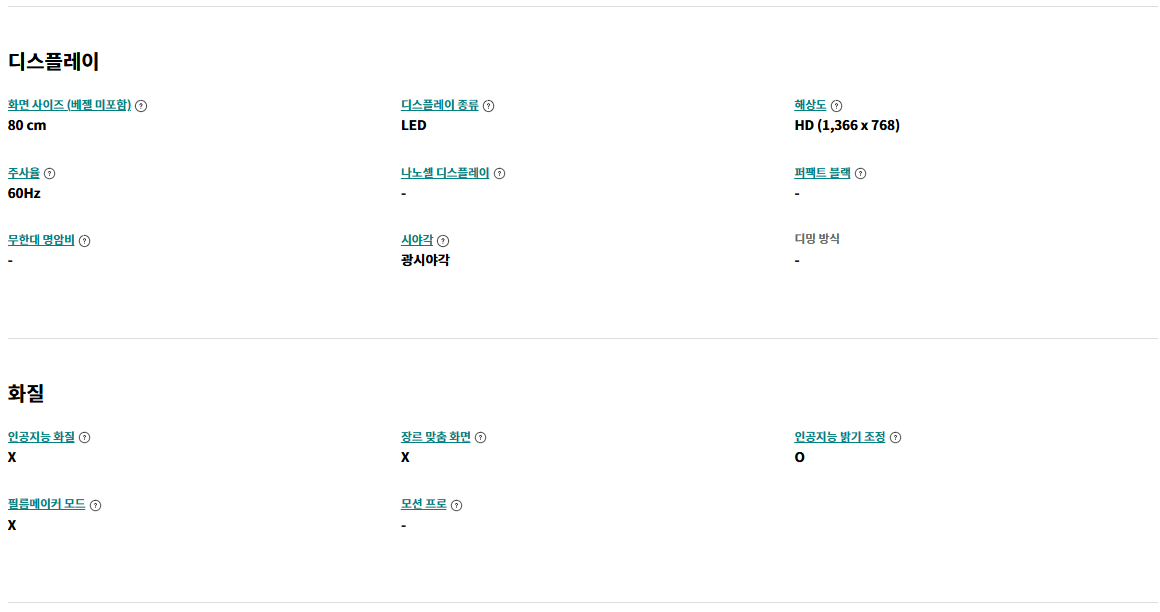 32인치 화면 크기는 침실, 서재, 작은 거실 등 공간 제약이 있는 환경에서도 적합합니다. 이 TV는 좁은 공간에서도 몰입감을 극대화하며, 80cm 화면 너비와 얇은 베젤로 시청에 방해를 주지 않습니다.