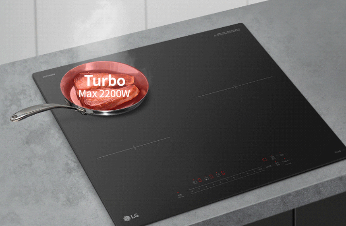 LG 디오스 인덕션 BEI3QEBLO는 3,400W의 강력한 화력을 제공하여 일반 가스레인지보다 최대 2.6배 빠른 조리 속도를 자랑합니다.