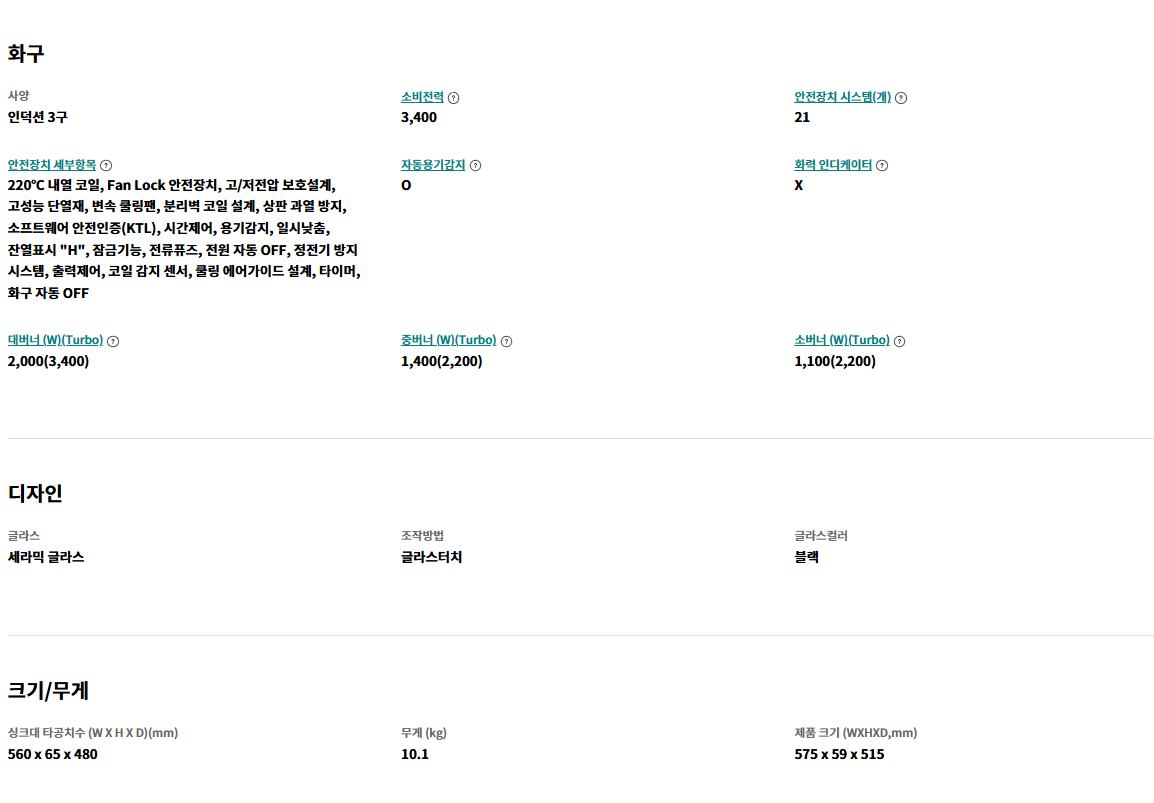 • 3구 인덕션: 다양한 크기의 용기를 동시에 사용할 수 있도록 설계