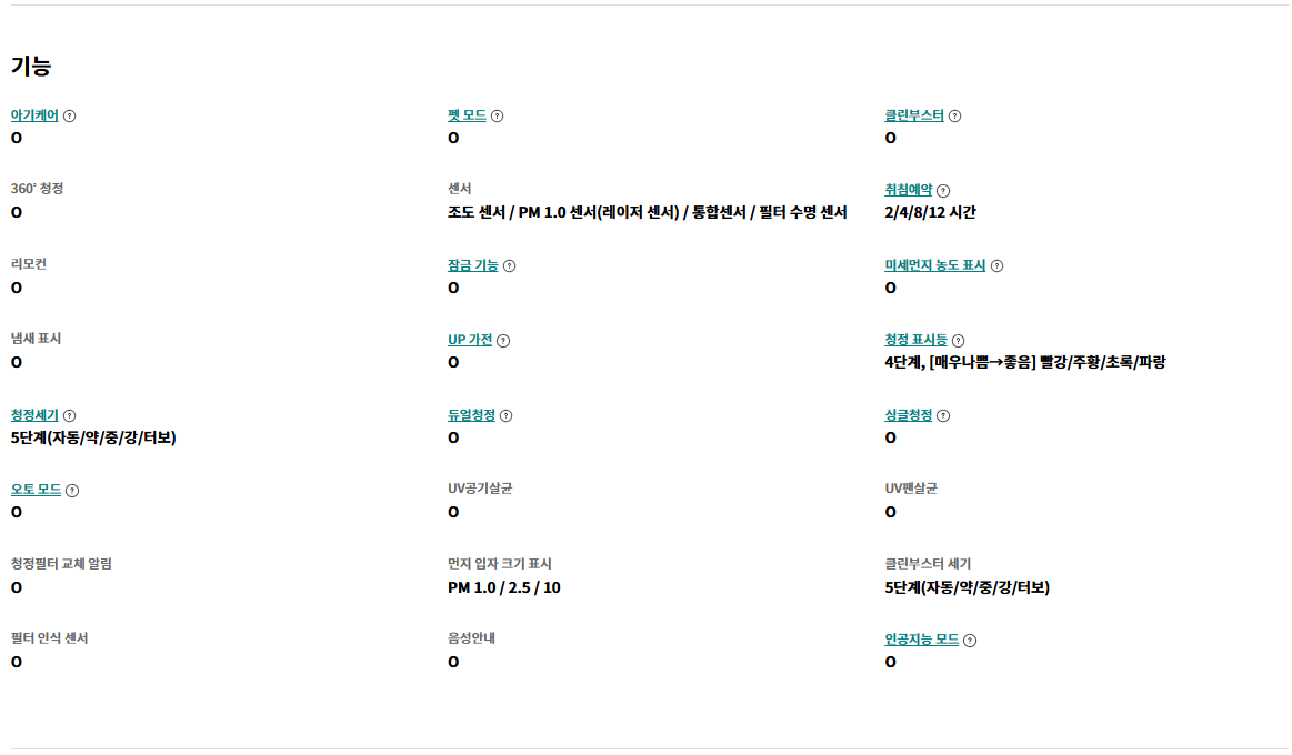 - 공기 청정 방식: 360˚ 전방위 흡입 및 클린부스터 배출