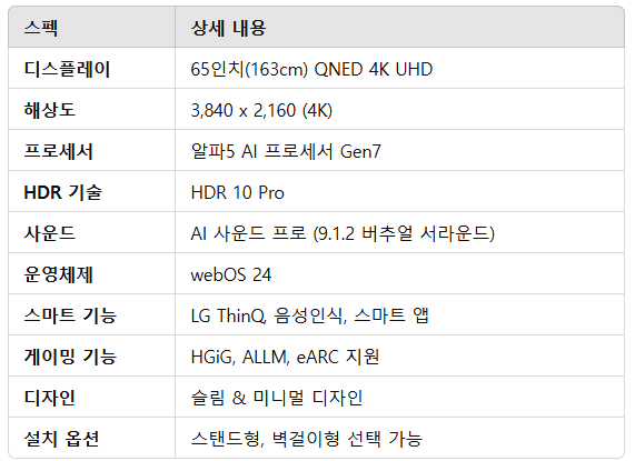 1-2. 한눈에 보는 LG 65QNED70TNA 스펙!