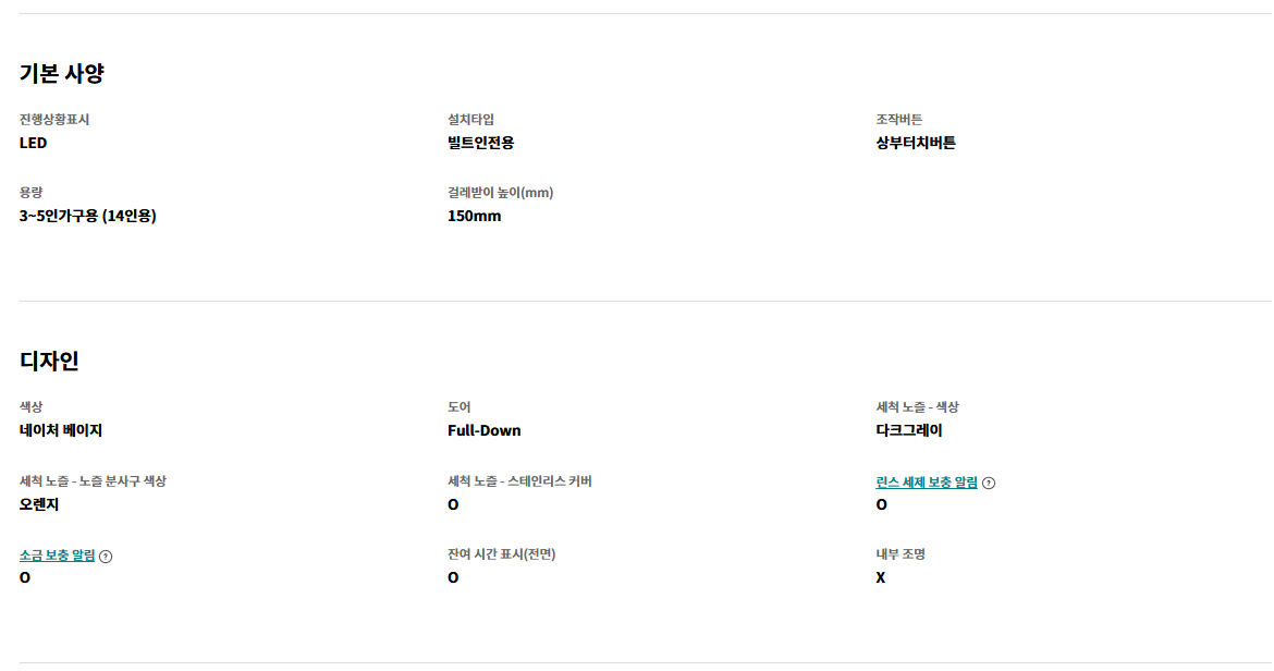 - 빌트인 전용 제품이므로 설치 공간을 미리 확인해야 함