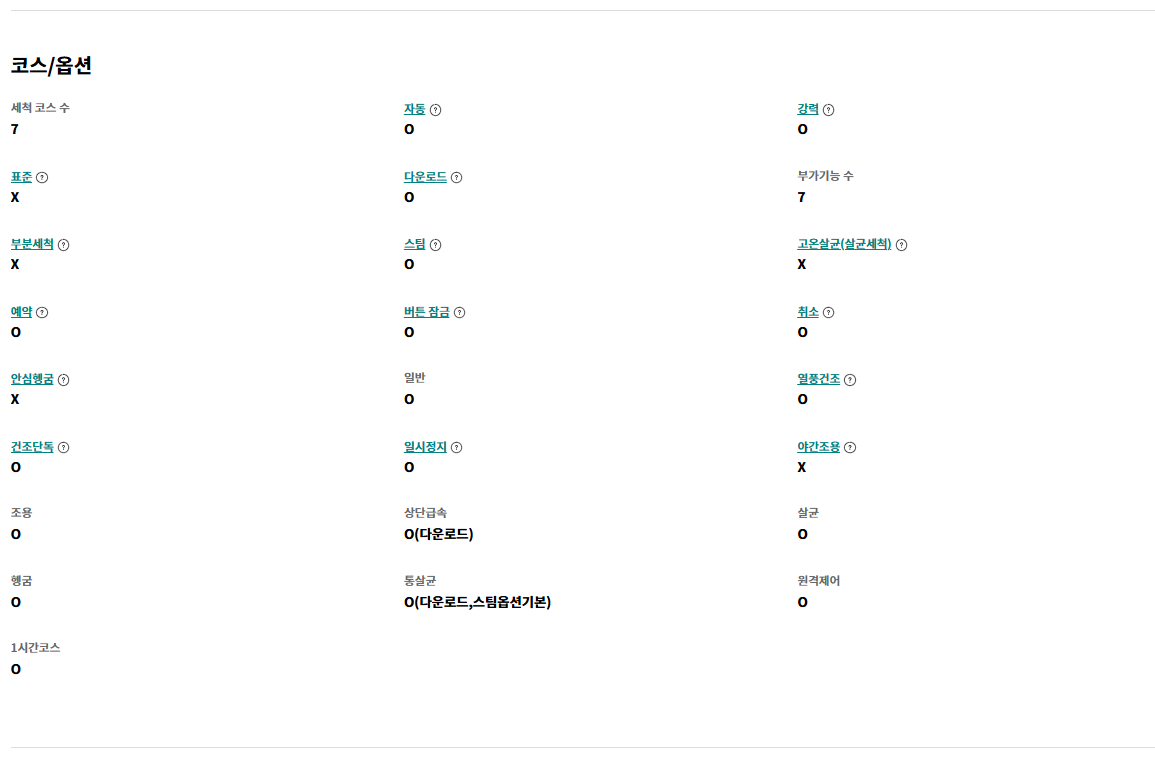 - 일반 세척 코스 사용 시 1회 전기료 약 98원(일반코스 기준)