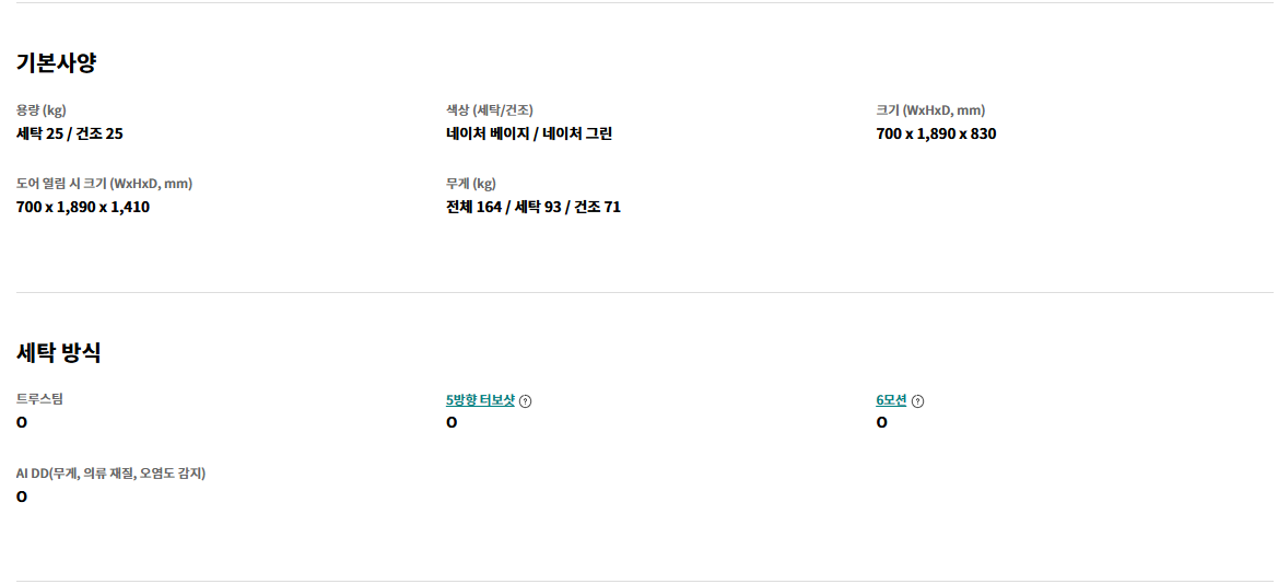 이 제품은 특히 대용량 25kg 세탁·건조기로서, 국내 최대 수준의 용량(2025년 3월 기준)과 최신 AI 기능을 모두 갖추고 있어 단순한 세탁기를 넘어, 생활의 질을 향상하는 스마트 가전으로 주목받고 있습니다.