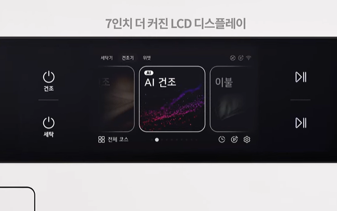 터치 조작이 직관적이며 세탁, 건조, 코스 설정은 물론 AI 리포트도 시각적으로 명확하게 제공합니다. 세탁이 처음인 사람도 쉽게 조작할 수 있을 정도죠.