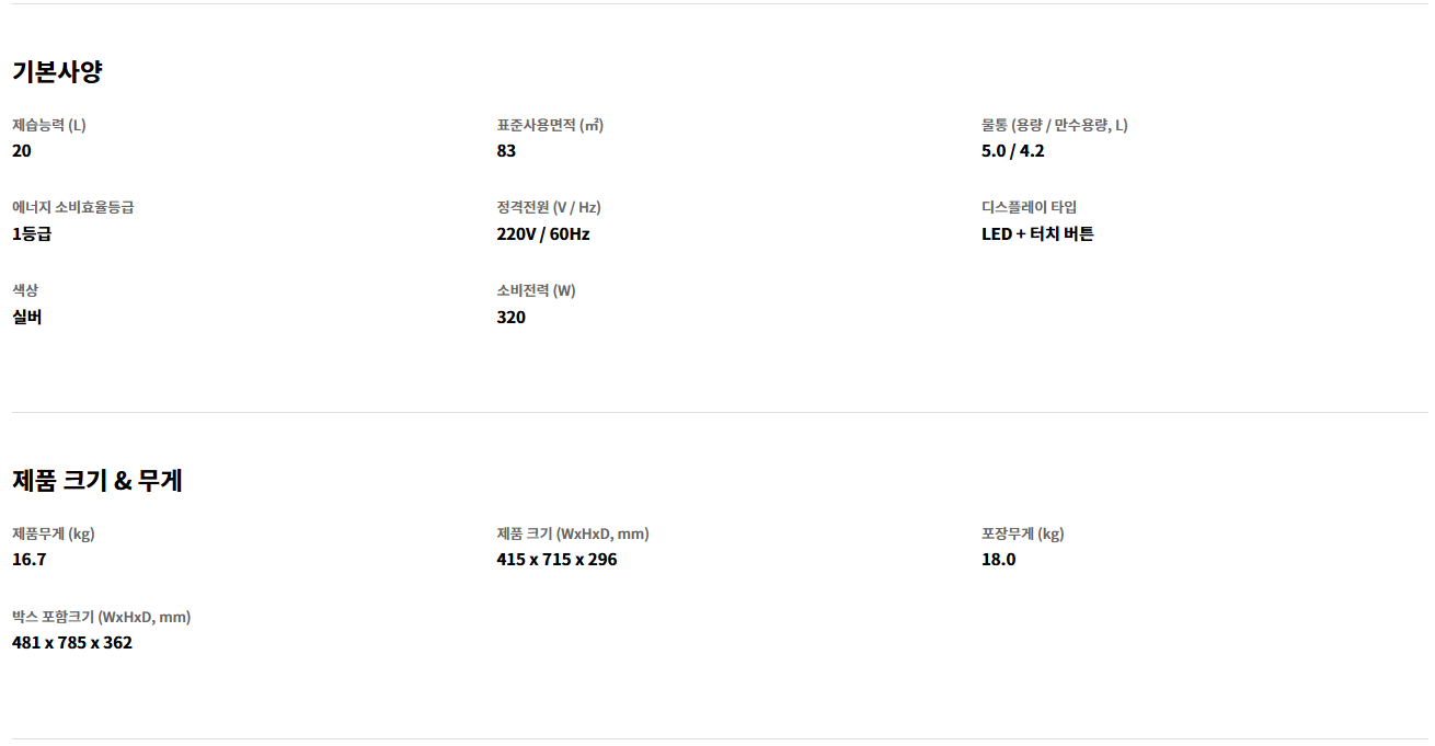 - LG ThinQ 앱 연동으로 스마트한 제습 가능