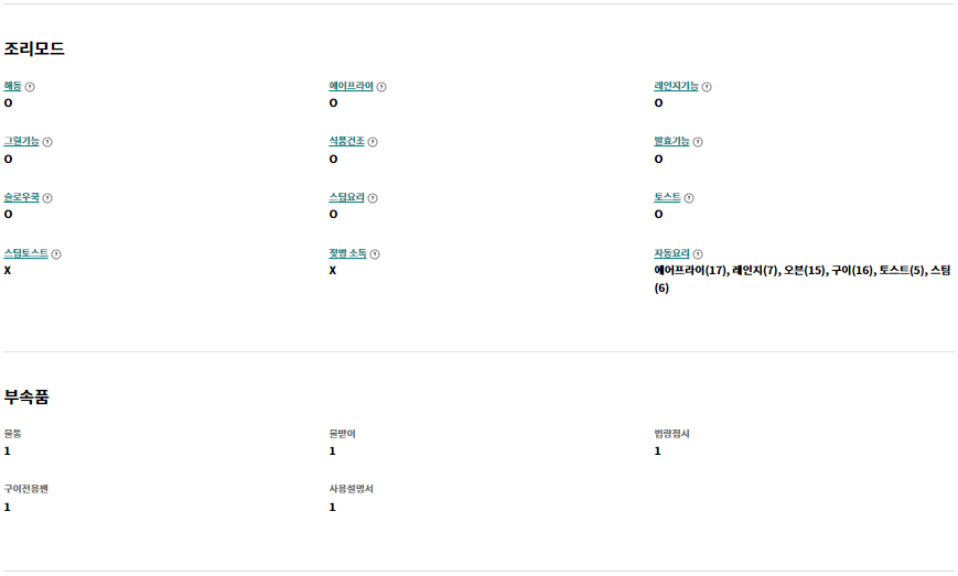 - 다양한 요리 기능 : 10가지 요리 모드로 요리의 폭을 넓히다