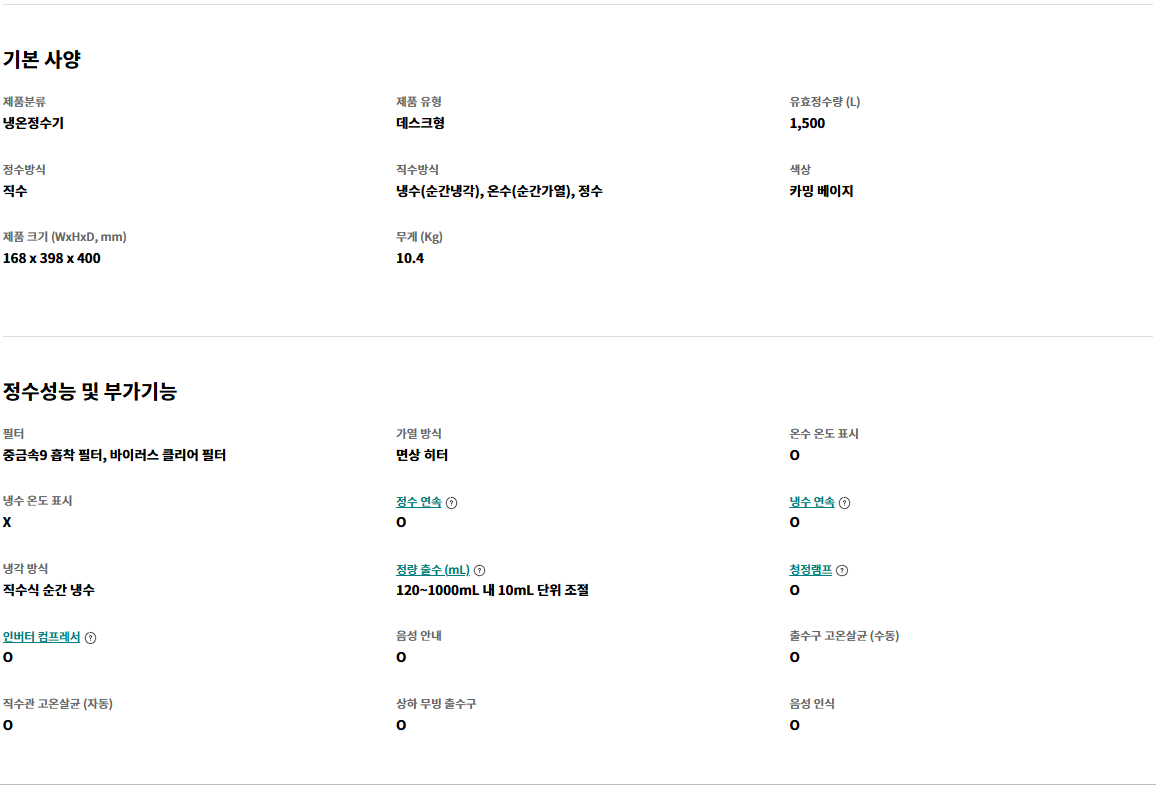 더욱이, 정수기라는 제품 특성상 싱크대 근처에 설치되는 만큼 외관이 주방의 분위기에 큰 영향을 미칩니다.