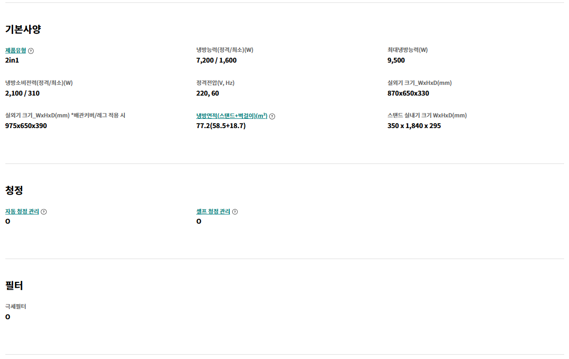 제품 스펙(출처:LG전자 공식 홈페이지)
