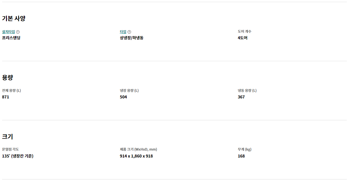 단순히 용량이 크기만 한 것이 아니라, 냉기를 효율적으로 분배하는 인공지능 냉기 케어 시스템과 더불어 자주 사용하는 음료와 음식을 쉽게 꺼낼 수 있는 더블매직스페이스 기능이 적용되어 있어 매우 실용적입니다.
